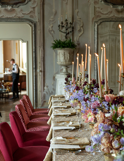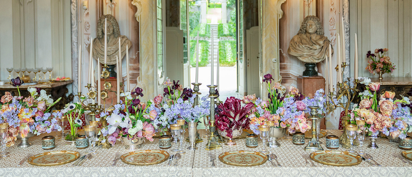 Set against the breathtaking backdrop of Lake Como, Villa Sola Cabiati hosted a celebration where nature, art, and romance came together in spectacular harmony. As the sun dipped below the horizon, dinner tables bloomed with floral runners inspired by the soft, saturated hues of an Italian sunset — Italian-grown tulips danced above layers of ranunculus in a modern yet timeless display.